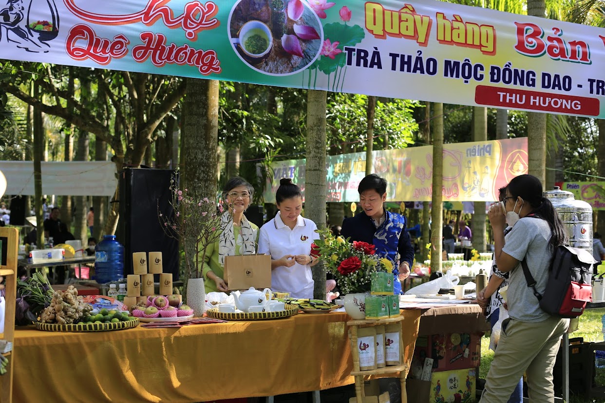 Trong số 26 quầy hàng/gian hàng có mặt tại đây, khách tới tham quan quầy hàng của công ty Bản Việt đều được mời Trà thảo mộc Đồng Dao nóng và lạnh hoàn toàn miễn phí. Đặt biệt, khách mua Trà Đồng Dao dùng; làm quà tặng,.. đều được tặng một bức tranh thư pháp ý nghĩa, mang niềm may mắn, phúc lộc đầu năm.